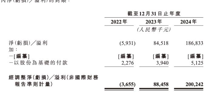 产品热卖带来的红利,也进一步反映在业绩上。据招股书,2022年~2024年,林清轩实现营收分别为6.91亿元、8.05亿元和12.1亿元,呈现逐年增长态势;盈利方面,公司经调整净利也从2022年的亏损增长至2024年的2亿元。