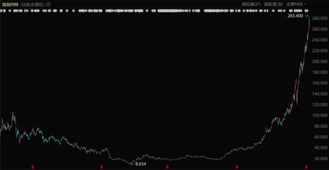 泡泡玛特股价表现(自上市至今)