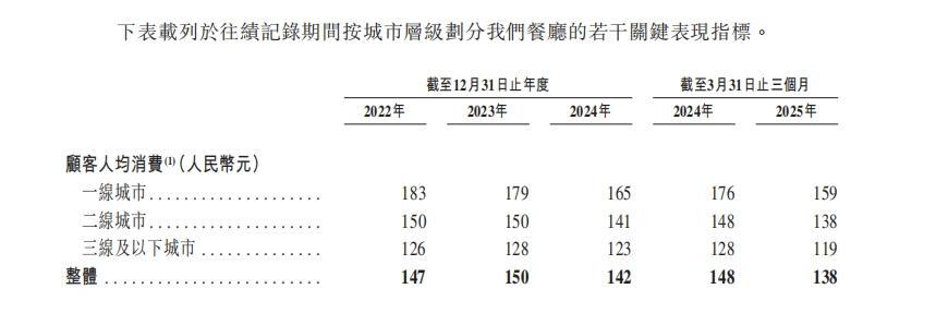 如今,巴奴正式向资本市场亮出底牌,招股书显示,其门店数量145家,2024年收入达23.1亿,盈利1.96亿。人均消费水平近几年维持在140元左右,高于海底捞。
