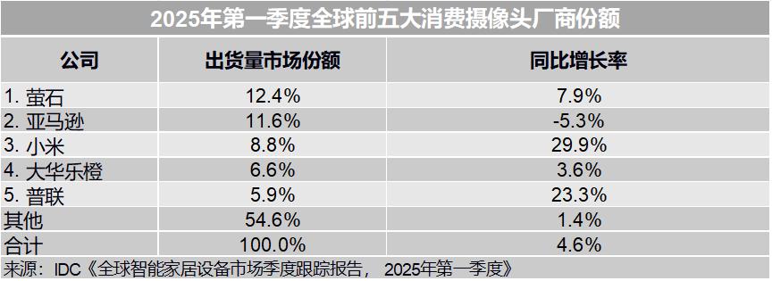与庭院相关的还有安全领域,在全球消费摄像头市场格局中中国品牌独具优势。2025年第一季度,萤石以420.3万台的出货量稳居全球榜首。萤石网络财报显示,一季度公司营收13.8亿元,同比上升11.6%;归母净利润为1.38亿元,同比上升10.2%。