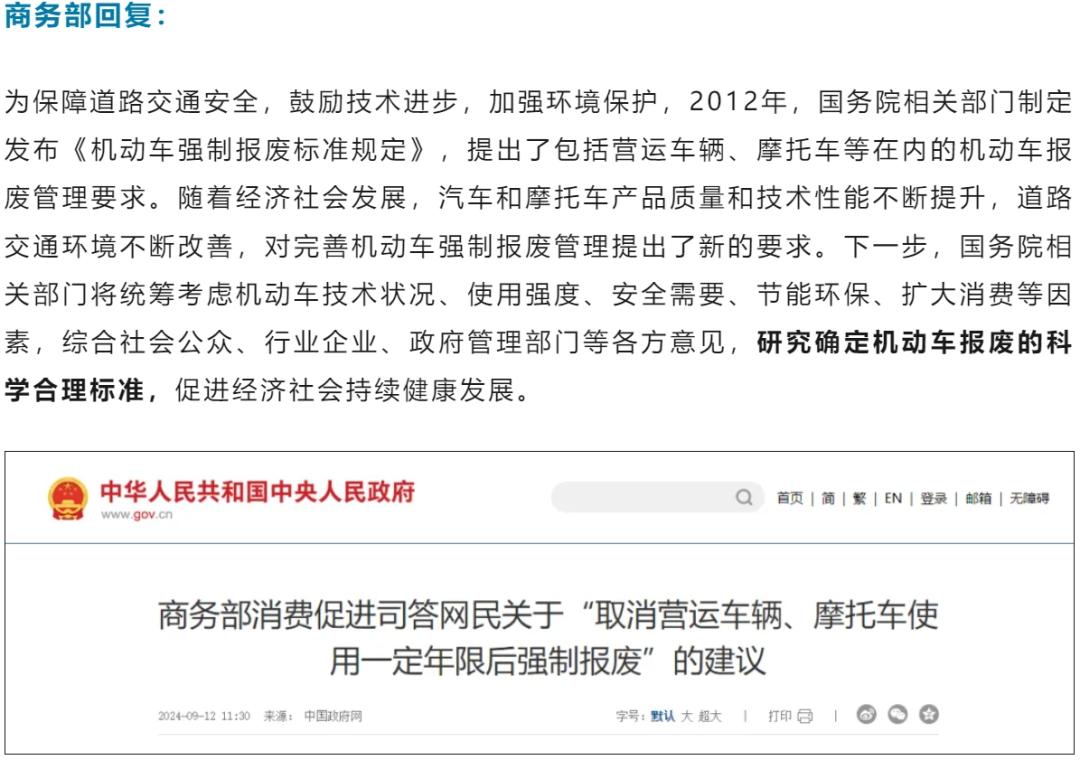 商务部就网友关心的13年报废政策作出回应