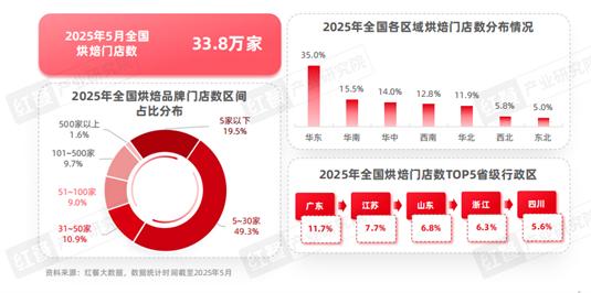 红餐产业研究院在《烘焙品类发展报告2025》中勾勒出行业高度分散的图景,截至2025年5月,全国烘焙门店数已达33.8万家,其中门店数在5-30家的烘焙品牌占比49.3%,门店数在500家以上的品牌仅占1.6%,大量品牌停留在区域连锁和“小连锁”阶段。