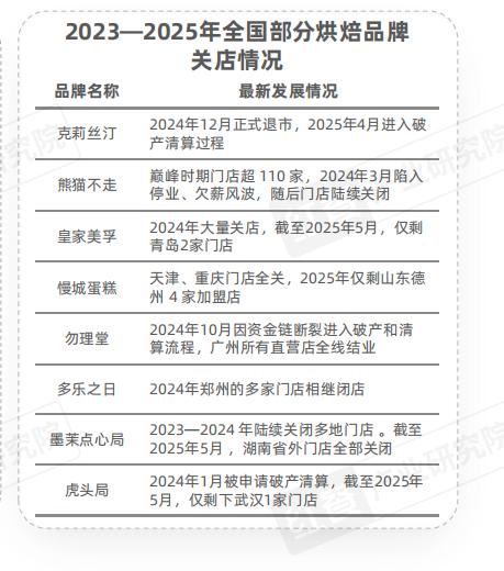 红餐产业研究院梳理的“全国部分烘焙品牌发展概况”中专门提到,克莉丝汀与熊猫不走、勿理堂、皇家美孚等在2023年至2025年间集中关店、破产的品牌一起,被视为典型的老品牌退场案例。