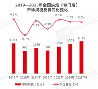 老牌和新品牌遇到的困难不一样,但都很具体。尽管竞争激烈,但市场基本盘仍在扩大。根据红餐的测算,2024年我国烘焙市场规模同比增长5.2%,达1105亿元,预计2025年有望增至1160亿元,说明整体需求并未缩小,而是在缓慢扩容。
