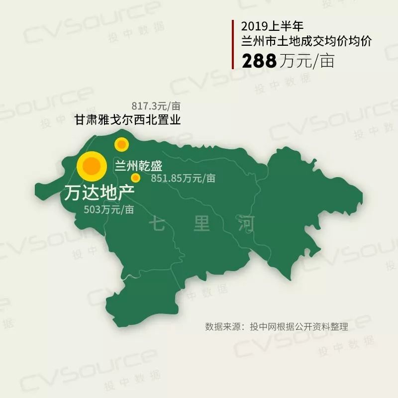 万达拍下兰州的地块位于七里河区,总体均价为503万元/亩。而兰州土地交易所信息显示,5月30日兰州乾盛房地产开发有限责任公司在七里河以2.3亿元拍下了27亩居住用地,即平均一亩为851.85万元;3月6日,甘肃雅戈尔西北置业有限公司在七里河以4.536亿元拍下55.5亩商业用地,平均一亩为817.3万元。而投中网根据3Fang.com数据统计,今年上半年兰州土地成交均价为288万元/亩。无论是商业用地还是居住用地,从当前信息来看,万达在七里河拿到的土地价格都相对较低。