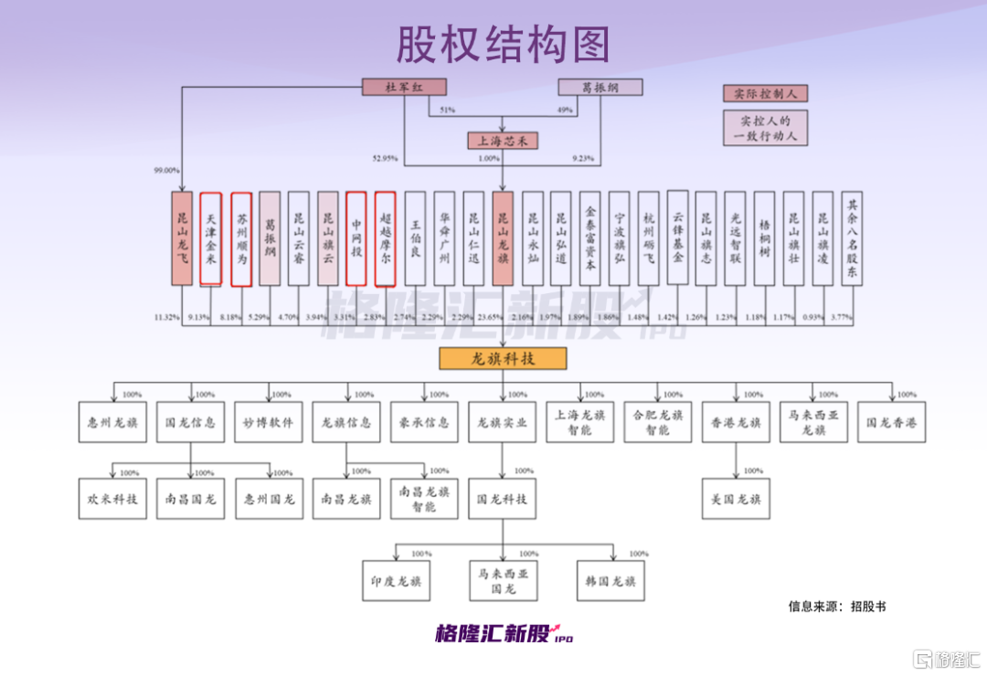 截至目前,公司的控股股东为昆山龙旗,实际控制人为杜军红,其通过昆山龙旗、昆山龙飞及《一致行动协议》合计控制公司44.20%的股份。