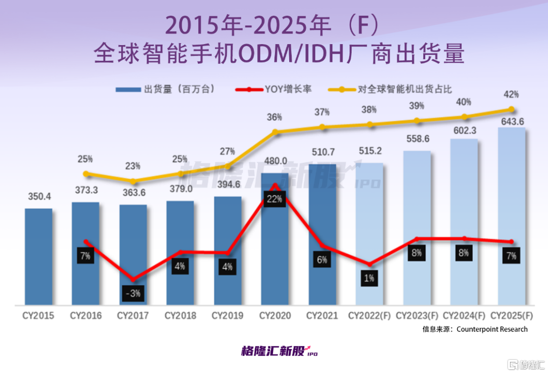 无独有偶,2021年全球前三大智能手机ODM厂商中,仅有闻泰科技上市,华勤技术的经历与龙旗科技有点类似,其于2021年6月递表科创板遇阻,又于2022年7月转道沪市主板。