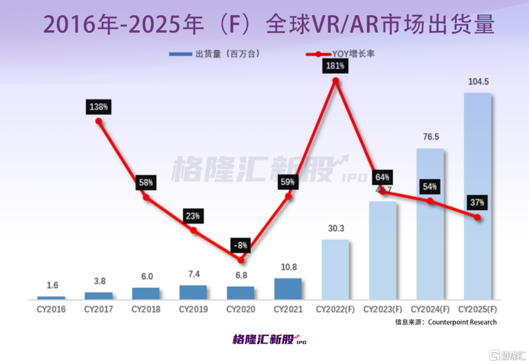 未来的看点可能在于智能手表、VR/AR等新兴市场,以VR/AR为例,2021年VR/AR的出货量超过1000万台,同比增长59%;预计至2025年底,出货量有望超过1亿台。