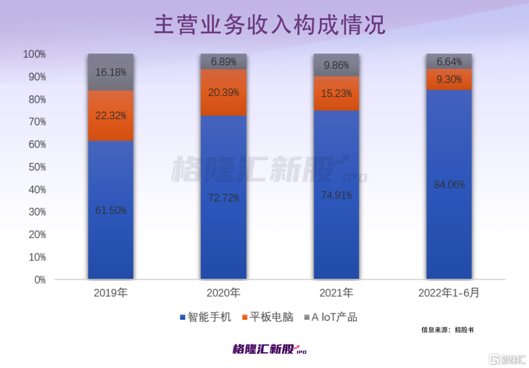 报告期内,公司智能手机业务收入金额及占比逐年上升,是最主要的收入来源。