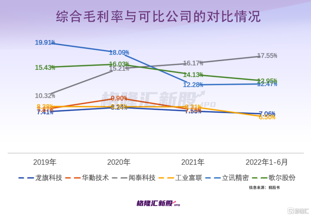 不过,公司AIoT产品收入占比较小,因此公司综合毛利率偏低,报告期内分别为7.41%、8.24%、7.55%、7.06%,低于可比公司的平均水平。