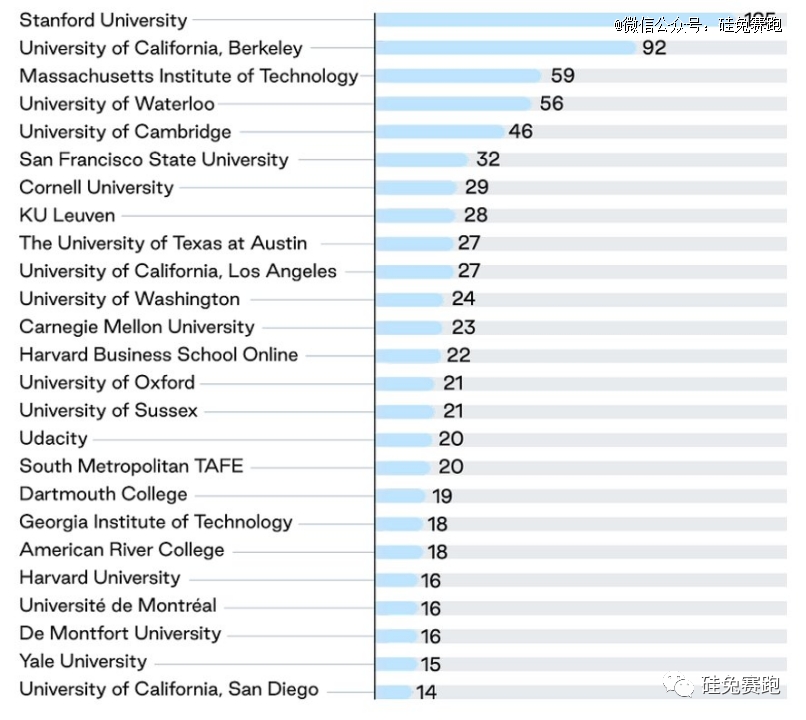 继续追踪11家公司技术人员的前雇主情况,华盛顿大学再次出现在榜单上,如上图所示。