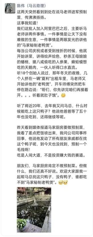 “吃是人间大道,不是投资赚大钱的赛道。”对此,马云前助理陈伟11月25日在朋友圈称,马家厨房不做预制菜。