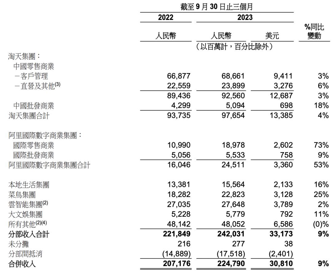 阿里各版块收入 图源 / 阿里2024财年第二财季财报