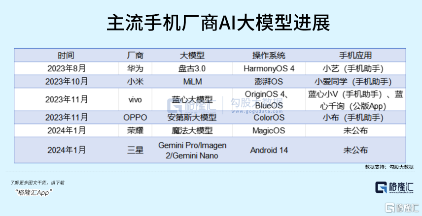 各家AI大模型落地手机的形式不尽相同,在参数量、架构等方面各有侧重,但对于使用体验强调着质的提升,在各自最新的旗舰版手机都搭载了AI大模型功能。