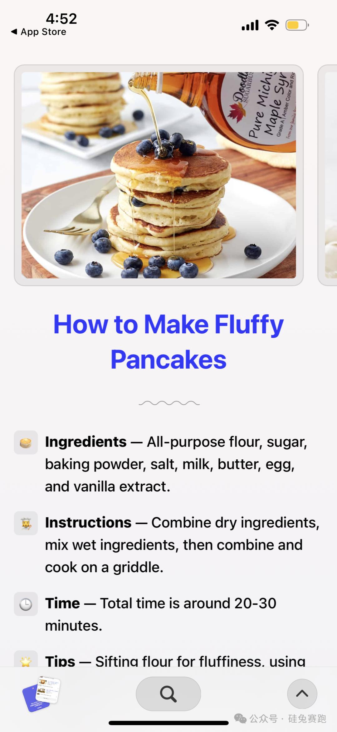 如果选择了后者,Arc Search的AI将会在全网搜索和浏览相关信息,将要点提炼成浓缩版回答反馈给用户,比如搜索“如何做松饼,”Arc Search生成的全新页面会基于多个信息来源显示做松饼所需的原料、步骤、准备时间,分精简版和详细版两种回答,结尾会附上更多网页链接供深度阅读,还可以在页面上进行关键词的搜索。