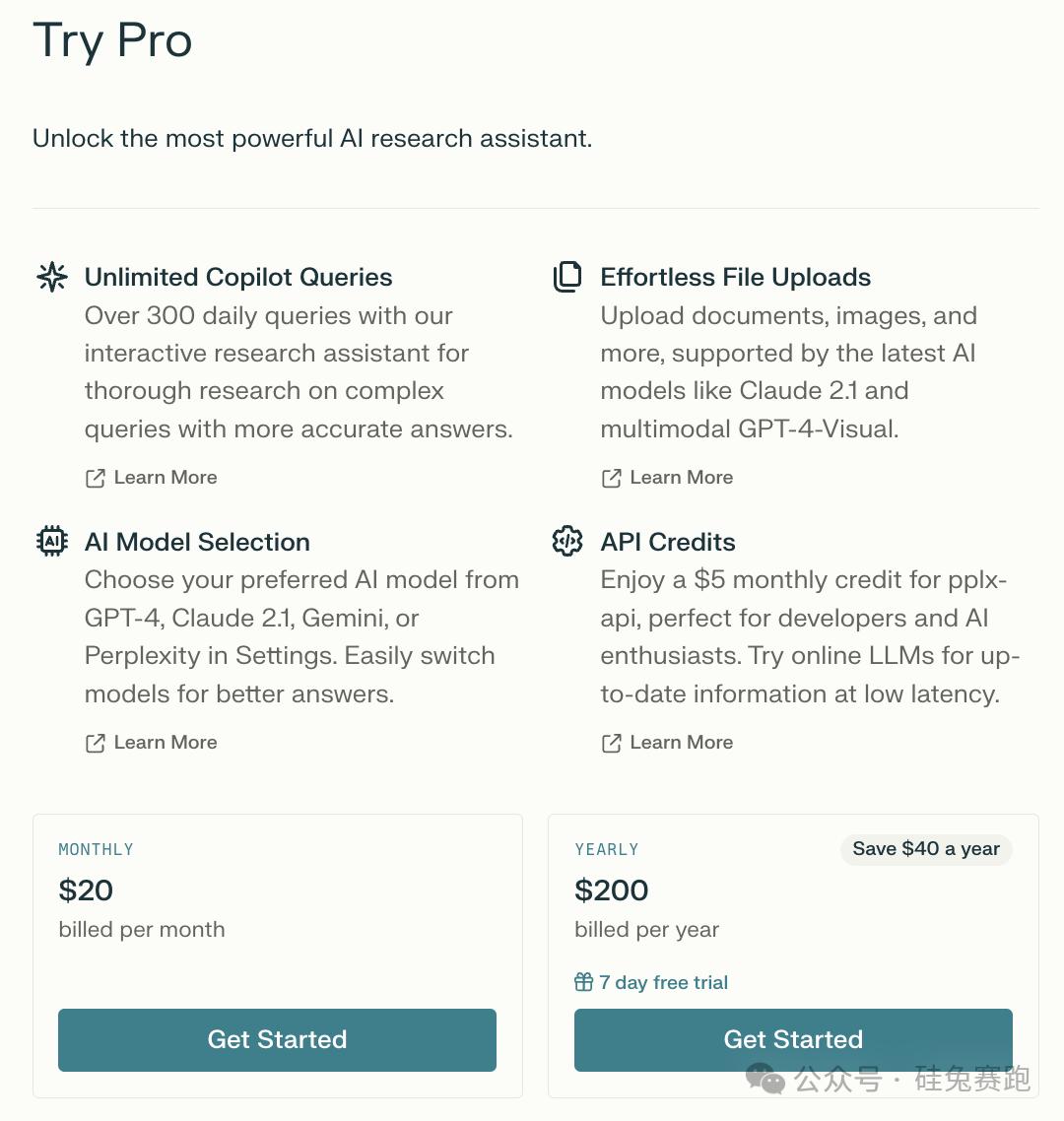 用户还可以选择开启最新的Copilot功能,它能够更快读懂用户问题背后的心思,并通过一连串的互动为用户呈现最定制化的回答。如果用户愿意付每月20美元订阅Pro方案,则能享受到更多福利,比如每日可以使用Copilot进行无限量的搜索来获得更加定制化和高质量的回答,可以在GPT-4、Gemini、Mistra 7Bl和Claude 2.1之间切换AI模型,还可以上传文件和图片让系统直接总结文件内容。