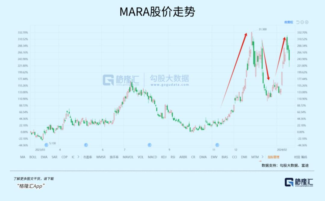美股的另外一只股票MARA,可以为超微电脑未来的走势提供参考。