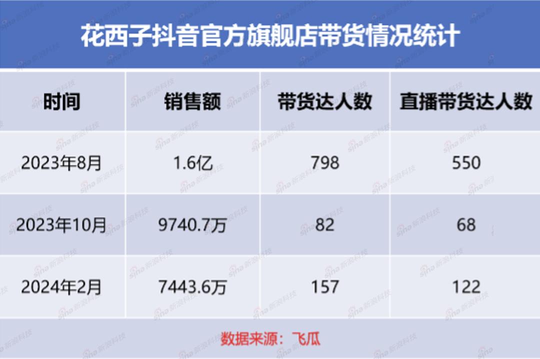 实际上,在此之后,花西子的行事作风已经低调不少。新浪财经查询飞瓜数据发现,在抖音平台上,自去年9月中旬开始,花西子合作的带货达人数量直线下滑,去年10月更是跌至82人,创下2023年的新低,而去年8月峰值则高达798人,目前其带货达人为157人。