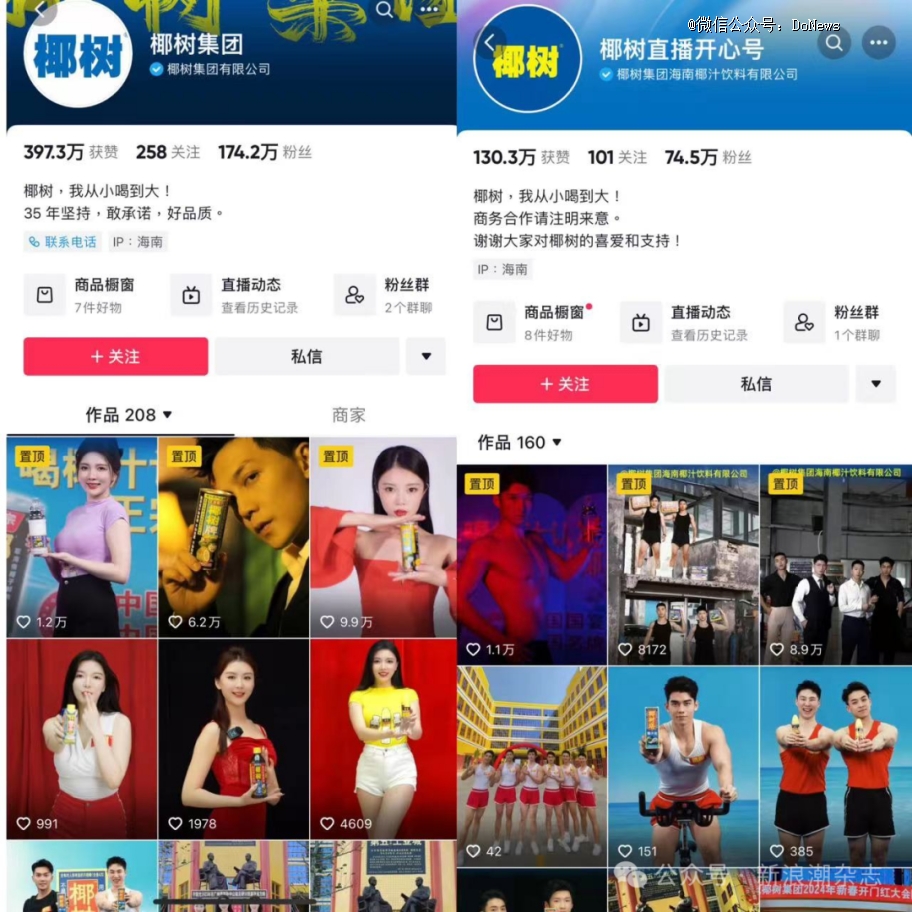 直到2021年,椰树集团旗下海南记得开心文化传媒公司的负责人尹丹丹,偶然发现了椰树式模特的流量密码,邀请了一些“符合品牌特质,且能展现品牌精神内核的人物”拍摄抖音宣传短视频,账号流量这才越聚越多。