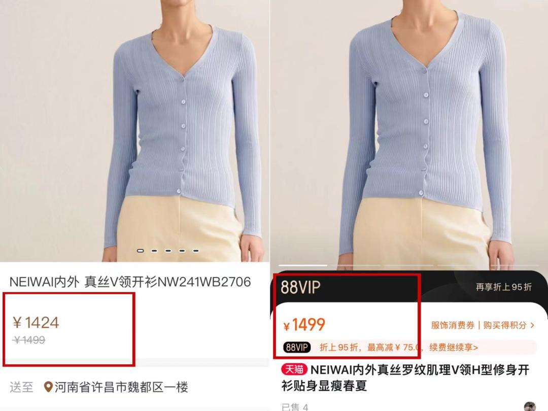 从价格层面来看,胖东来线上购物的商品,价格并不便宜,但也没有超出合理范围。就一款真丝开衫的价格而言,猎云网对比了同款商品在淘宝旗舰店的售卖价格,二者相差不多。