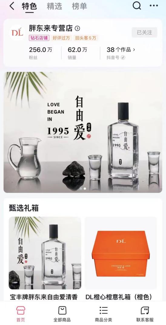 除了微信端,另外一个由官方认证的线上渠道是“胖东来抖音商城”,于2022年12月正式推出,目前粉丝数量已达到256万,销量62万,在售产品有7种,也都是胖东来的自有品牌。