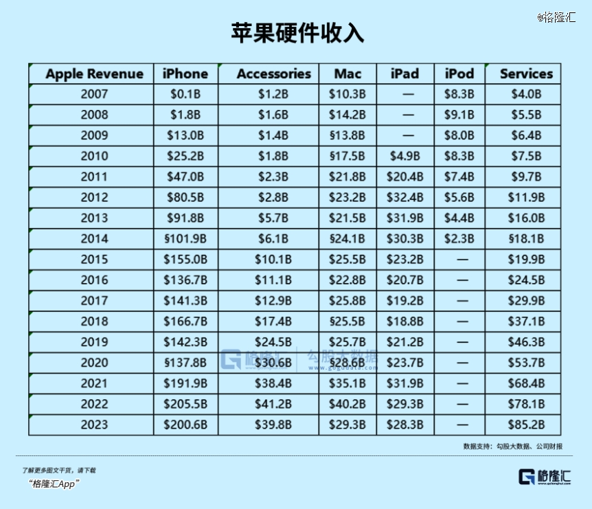 去年除了软件服务,几乎所有各类硬件营收出现下滑,很大程度是因为需求不振,苹果挤牙膏式创新已经跟不上同行的步伐,即使手机卖了全球*,以价换量最后体现到收入上的效果可见一斑。