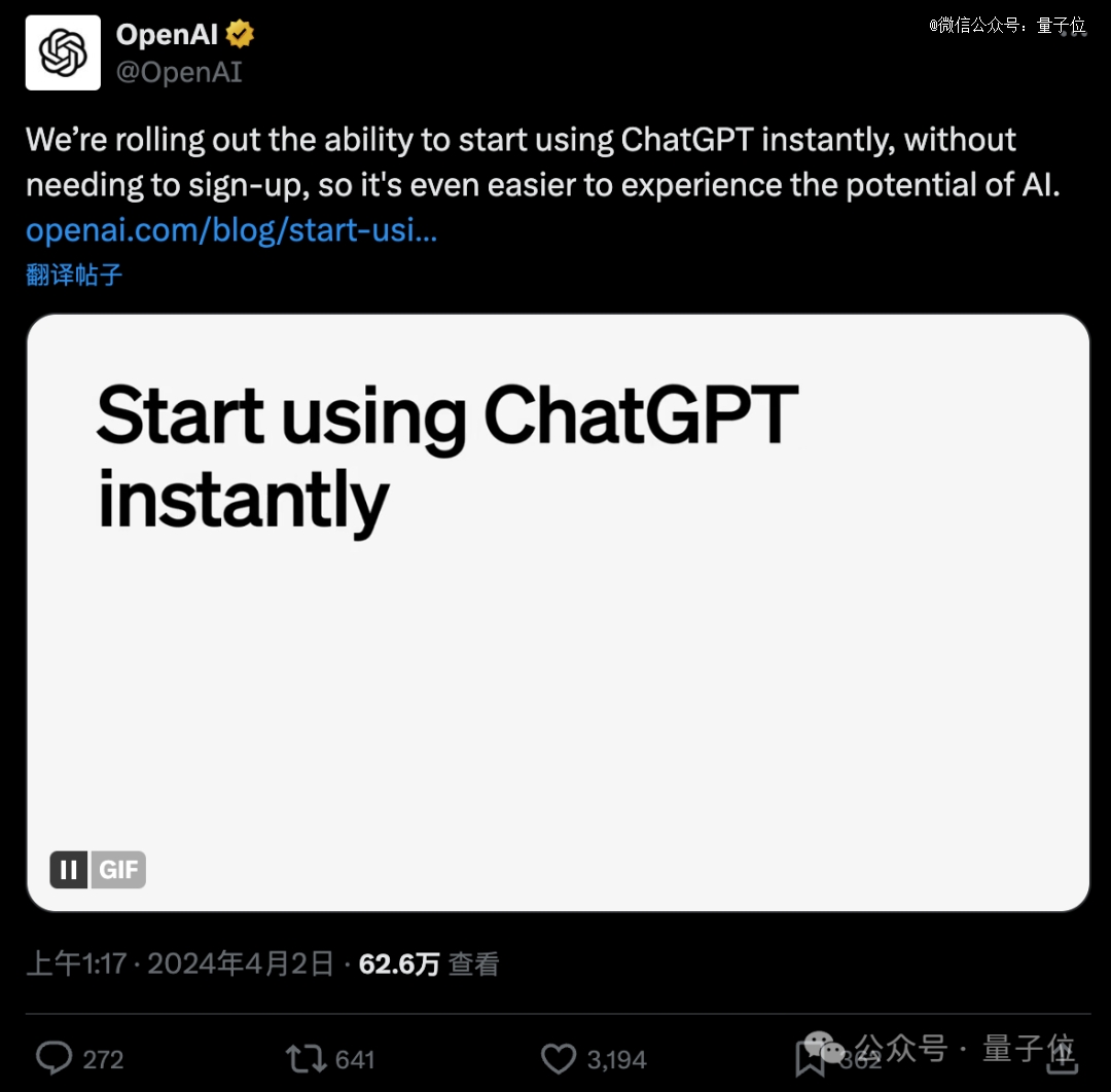 从今天起,ChatGPT打开即用,无需再注册帐号和登录了!