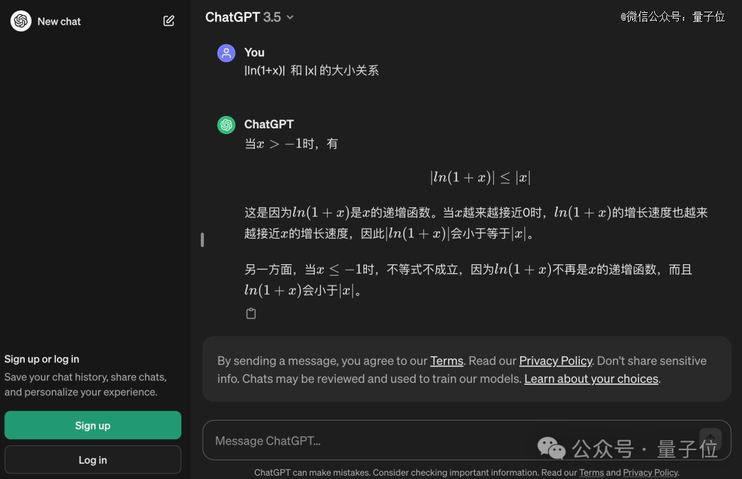 我们这就来实测一番,上题目——|ln(1+x)| 和 |x| 的大小关系。