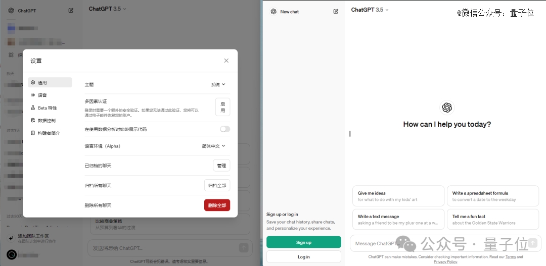 当然,OpenAI官方还是鼓励用户们登录账户去体验ChatGPT,因为很多功能在“超自由版ChatGPT”中是没有的,例如保存或分享聊天记录、使用自定义指令等等。