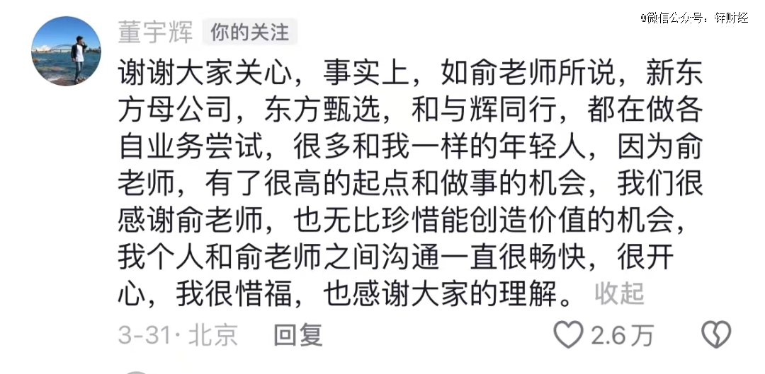 眼下,俞敏洪面对董宇辉,不得不放低姿态。