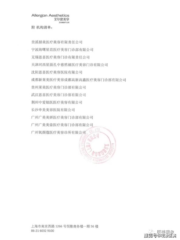 在告知函的附件中,艾尔建美学点名所涉成都、广州、武汉、无锡等多个地区的13家医美机构,并表示名单还会持续更新。