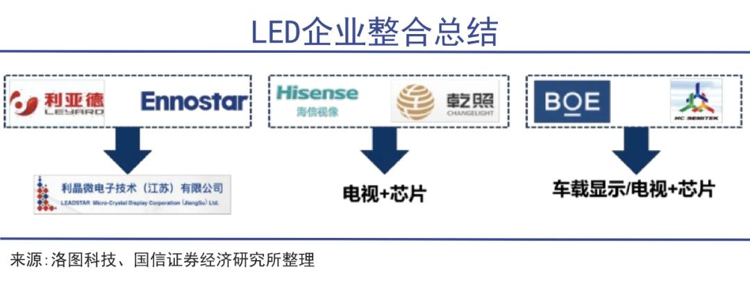 由于新技术涉及芯片、全新封装等技术,行业纵横捭阖、强强联合的趋势愈发明显。2020年,利亚德和富采控股合资成立利晶,实现了上游芯片-中游封装-下游应用的全产业链布局。