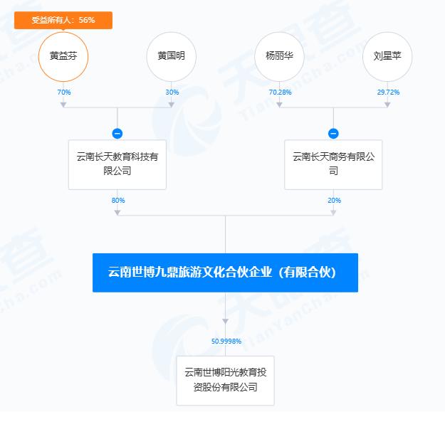 通过股权穿透,阳光花园阳光幼儿园的投资方似乎与九鼎投资旗下子公司设立的云南世博九鼎旅游文化合伙企业(有限合伙)(以下简称“云南世博九鼎企业”)投资的云南世博阳光教育投资股份有限公司(以下简称“云南世博公司”)有着一丝联系。