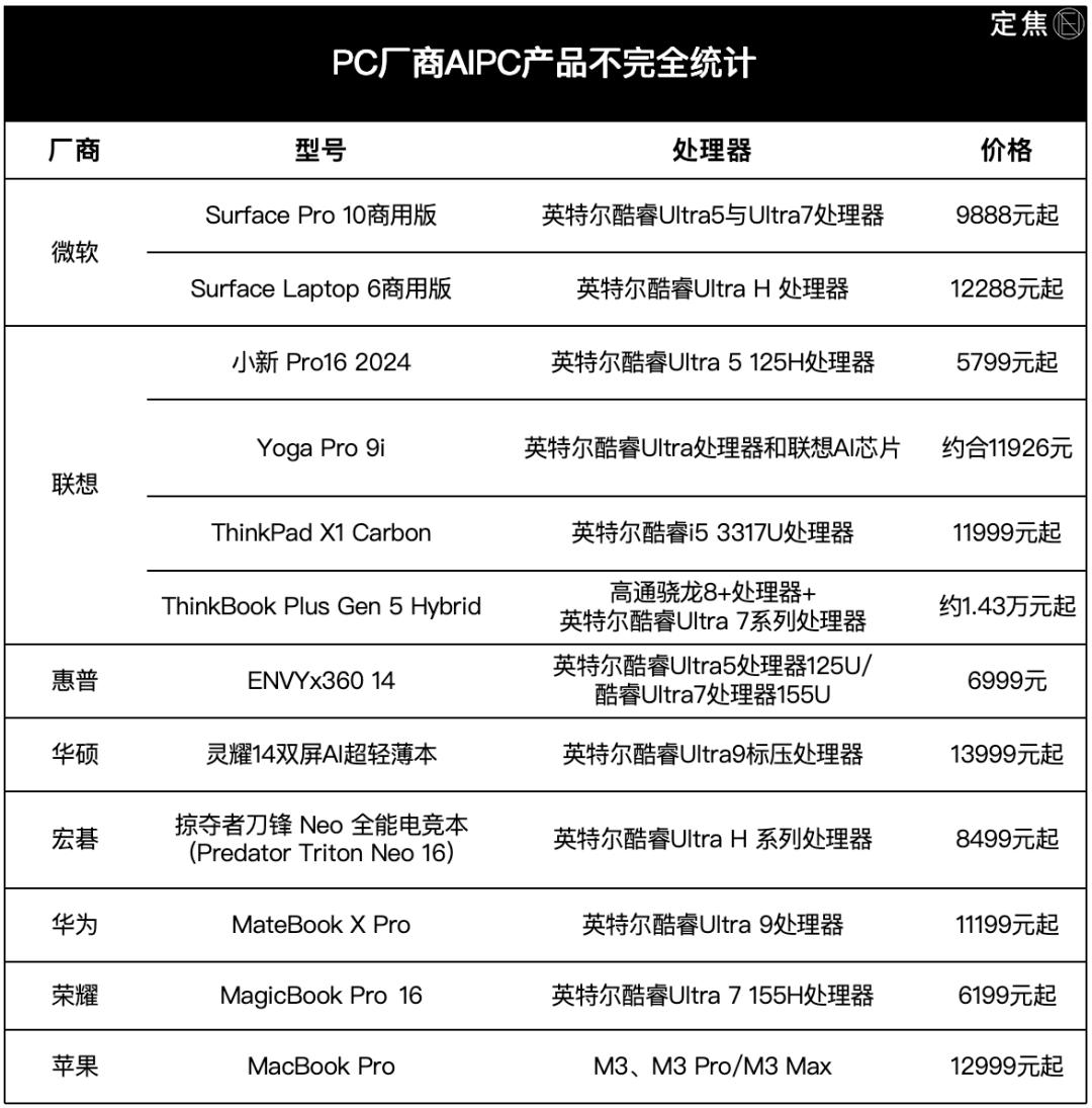 其他PC厂商自然不愿多等,基本都靠接入别家AI芯片的方式,快速推出产品。