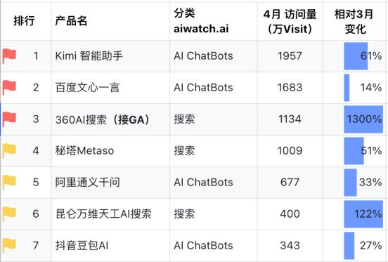 由于统计口径差异,在360AI搜索访问数据上产生了分歧,但参考国外统计网站Similarweb数据,4月360AI搜索的访问量也达到了120万,较3月增长了300%。