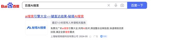 同时,各家也打起了偷对家塔的主意,比如在百度搜索”百度AI搜索”的关键词出现了秘塔的广告,搜“天工AI搜索”再次出现了秘塔的广告。