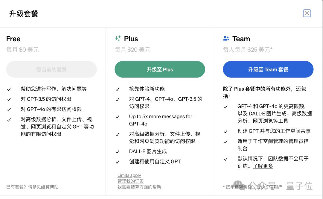 在此之前,市面上大部分聊天机器人还是围绕着我们更为熟悉的会员制度。会员会收获更高版本、更多Tokens、插件/生图功能等权益。