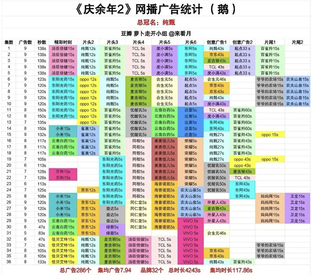 为了容纳诸多“金主”,《庆余年2》还将广告商排了番位等级。