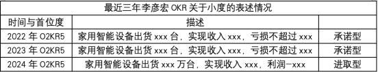 2022年,李彦宏关于小度的表述是:家用智能设备出货xxx台,实现收入xxx,亏损不超过xxx(承诺型);2023年的表述没有发生哪怕一个字的改动。情况到今年Q1有了变化,李彦宏的表述为:家用智能设备出货xxx万台,实现收入xxx,利润-xxx,该KR首次标注为“进取型”。