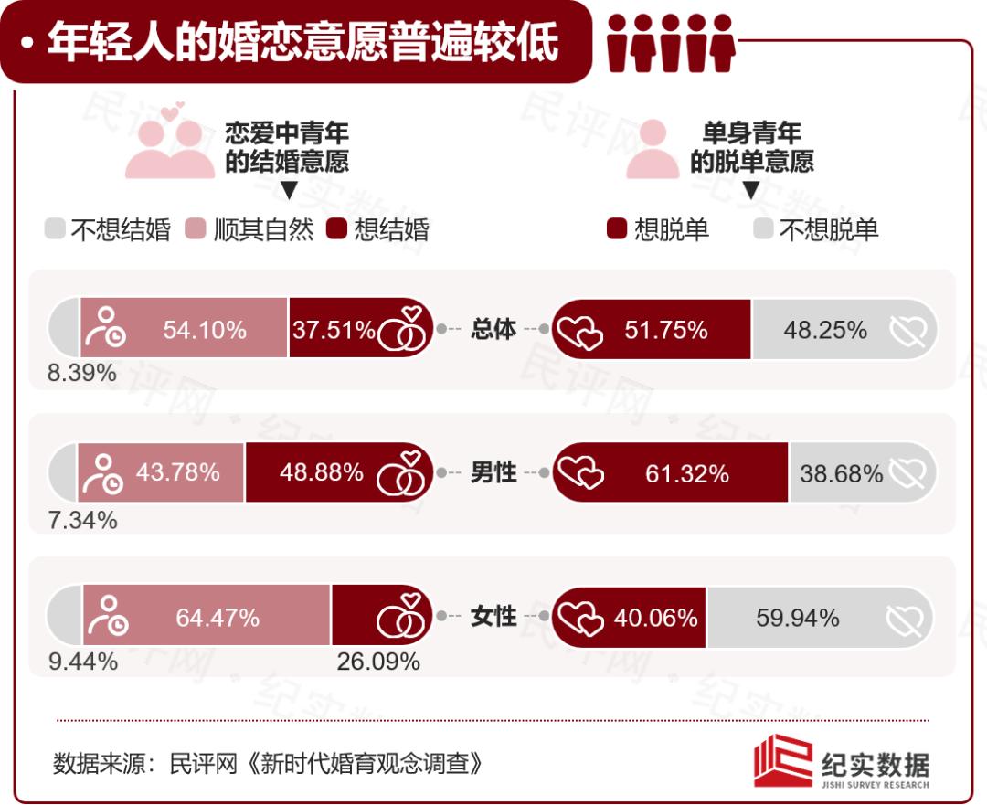 谈恋爱、结婚压力太大、代价太大,大得超过了人对婚恋的渴望。于是,这些18岁到35岁的年轻人构成了这些视频的基本盘。
