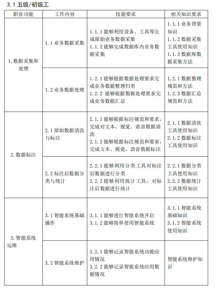 来源:工信部《国家职业技能标准——人工智能训练师(2021版本)》截图