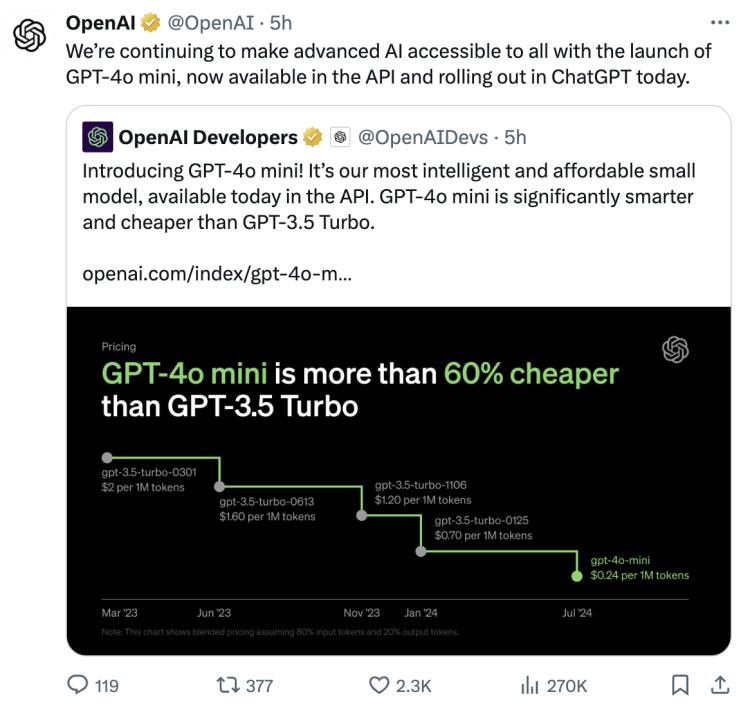 OpenAI推出“小”模型,开始卷性价比了