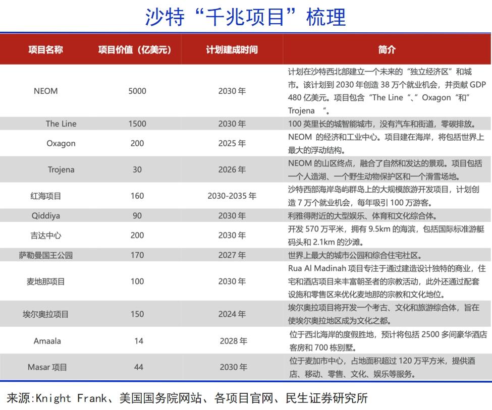 基建兴国,建材先行,而沙特国内建筑材料供应不足,技术工人短缺,一直是阻碍2030愿景顺利完成的大问题。而中国的建筑材料产业链完备且全球领先,巨大的产能也有向海外转移的迫切需求。
