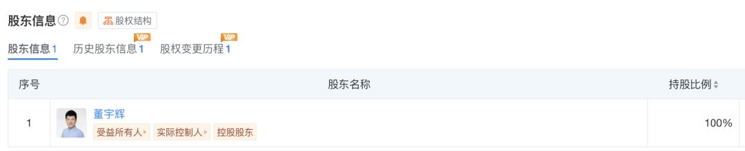 新东方创始人、东方甄选CEO俞敏洪在公告发布当天在社交媒体发文称,将与辉同行“送”给董宇辉。目前该公司也的确由董宇辉个人持有100%股权。