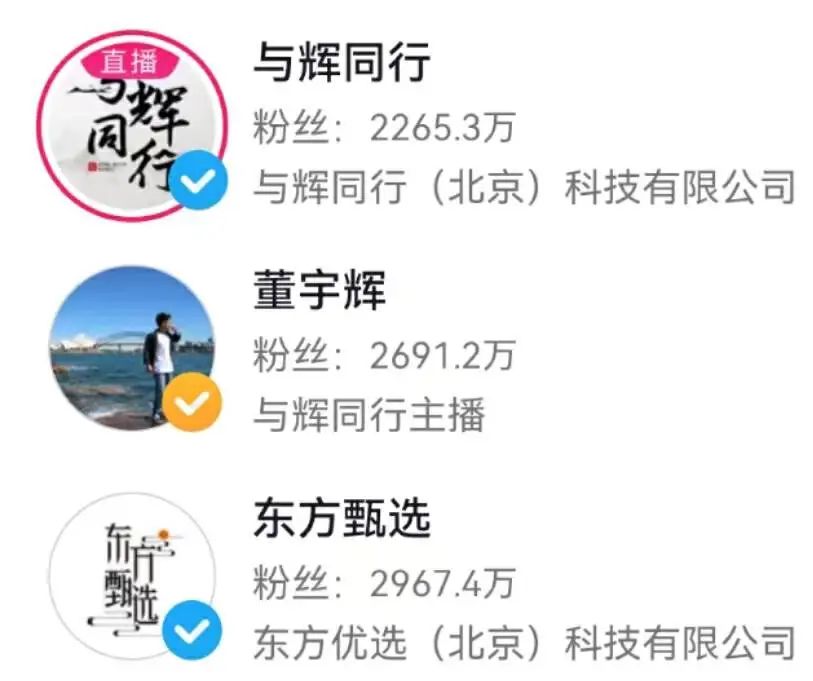 目前东方甄选抖音号粉丝降至2967.4万,与辉同行的粉丝一路上涨到了2265.3万,董宇辉个人粉丝量达到了惊人的2691.2万,俞敏洪的粉丝为1494.2万,比他少1000多万。