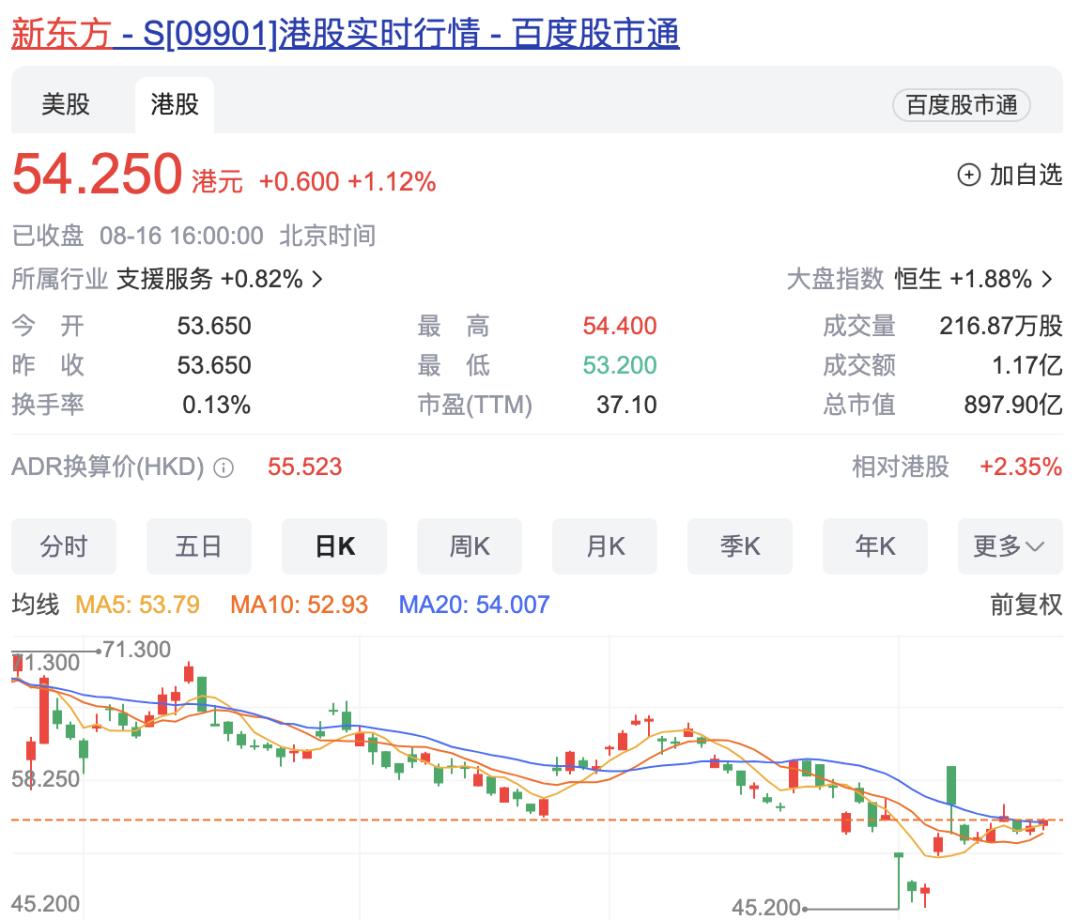 目前,整个新东方集团的教育板块实际上也在回暖,教育行业“一哥”俞敏洪并不是只靠董宇辉赚钱,他依旧有自己的基本盘,新东方(指新东方教育科技集团有限公司,非东方甄选)897.9亿港元的市值,也主要来自教育业务。