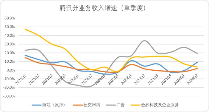图:腾讯分业务收入增速,来源:锦缎研究院