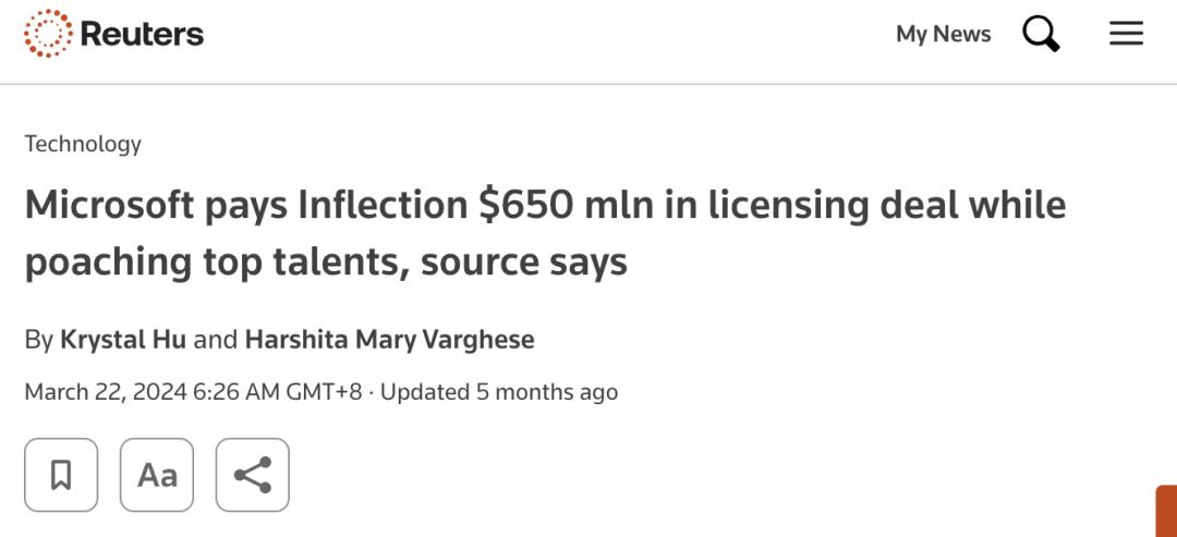 同样引起注意的,还有更早之前微软对Inflection AI的行动,这家公司由DeepMind联创Mustafa Suleyman创立。