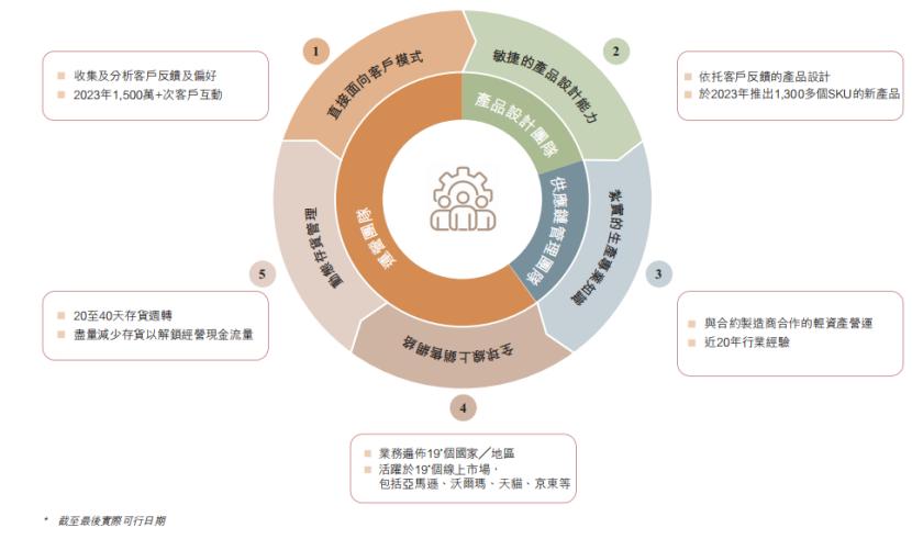 卡罗特业务模式由五大元素组成,通过直接触达客户,公司能够快速获知市场需求。从基本的锅碗瓢盆到设计精良的餐具及饮料容器,卡罗特定期更新产品阵容,推出新产品及改善产品,以保持客户黏性。