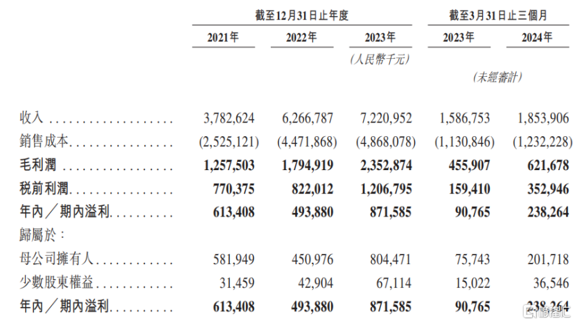 2021年、2022年、2023年及2024年1-3月(以下简称“报告期”),赤峰黄金分别实现营业收入37.83亿元、62.67亿元、72.21亿元及18.54亿元;归母净利润分别为5.82亿元、4.51亿元、8.04亿元及2.02亿元。